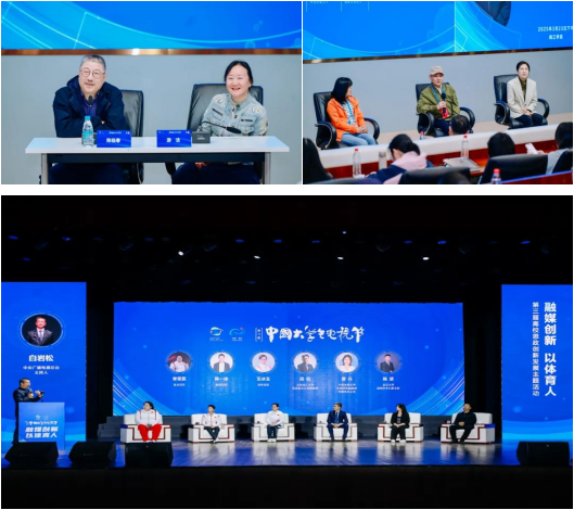 在“艺术家进校园”活动中,戏剧影视学院教授游洁和曾担任多年央视春晚总导演、总制片人的陈临春围绕央视春晚的昨天今天和明天,共同为在场的青年学子带来一场精彩纷呈的公开课。电视学院副教授白晓晴围绕AIGC 赋能传统文化传承与创新这一前沿主题,鼓励青年创作者们利用新技术开拓全新的创作领域。在高校思政创新发展主题活动中,新闻学院副教授曾兴与奥运冠军、思政名师一起同中央电视台主持人白岩松对话交流,共同探讨构建“大思政课”育人新格局。