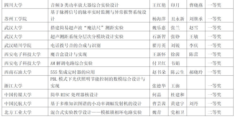 全国高校电工电子基础课程实验教学案例设计竞赛采用自愿报名、赛区初赛、全国决赛的方式。初赛在全国共划分华北、北部、西部、中南、华东5个赛区,共收到来自29个省直辖市自治区226所高校、682个参赛项目。在华北赛区比赛中,信息与通信工程学院共有5项作品参加了比赛,何晶老师获得一等奖,周德扬、李晨、孙象然和田佳音老师获得三等奖。