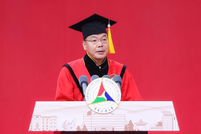 张树庭深情回顾了本届毕业生的在校时光。他强调,学校建校70周年之际习近平总书记给全体师生的重要回信既是勉励与期许,更是信任和重托,是每一位中传人的荣光与自豪,也是同学们奔赴人生新征程的强大精神力量。