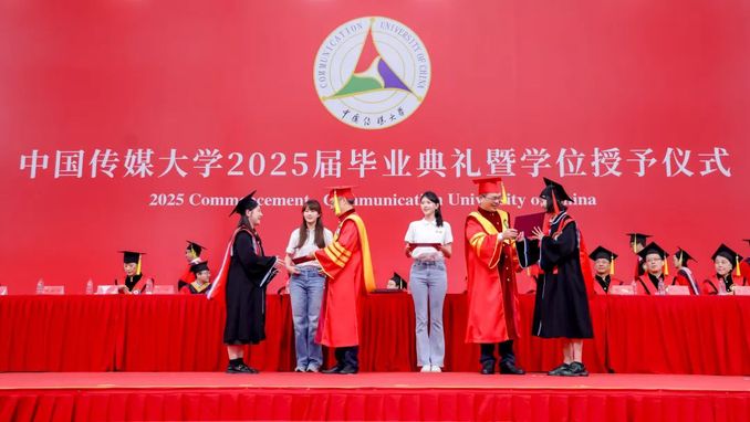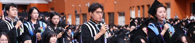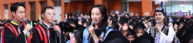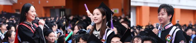 毕业典礼现场,23名来自不同学院的毕业生代表发言。同学们对学校的培养表示感谢,讲述了自己在校学习期间的收获与感悟,并分享了未来的规划与愿景。毕业生们铭记习近平总书记在给中传全体师生回信里的殷切嘱托,怀揣传媒报国的赤诚理想,投身科技创新行业一线,扎根社会治理基层沃土,坚守新闻舆论时代阵地,践行国际传播使命担当,用实际行动奔赴各行各业最前沿。
