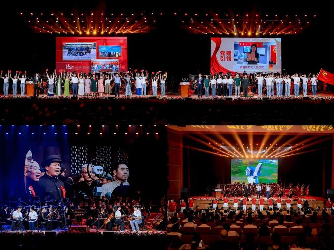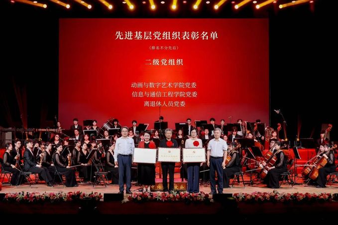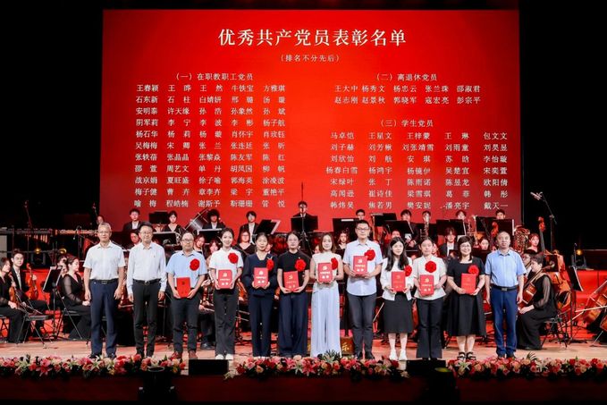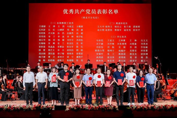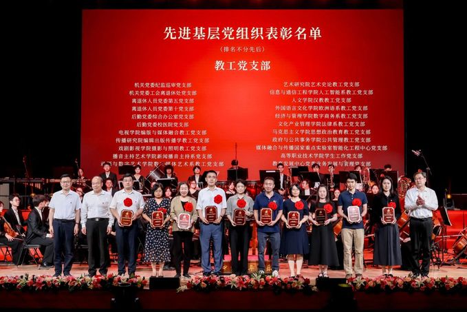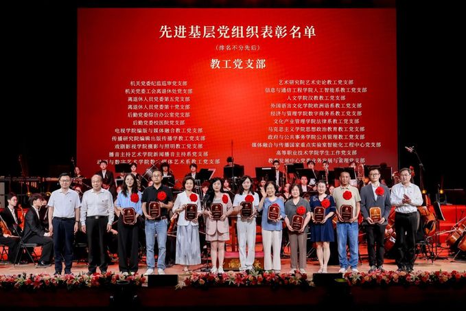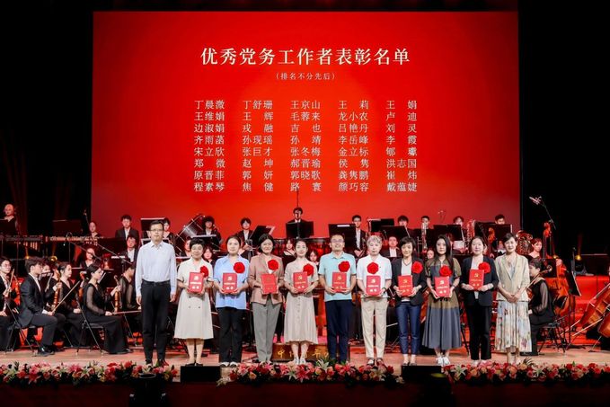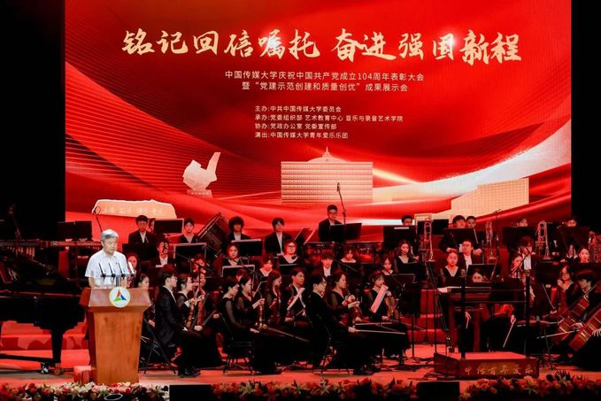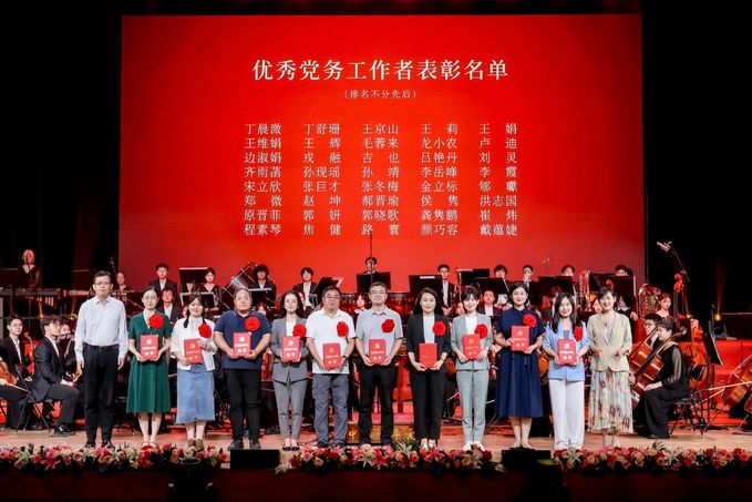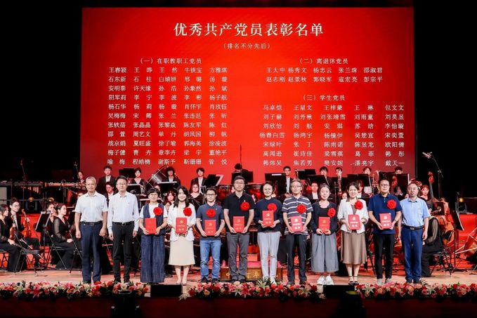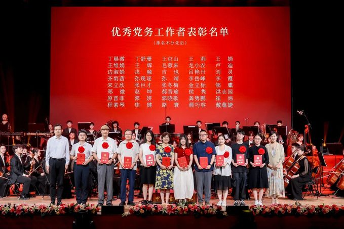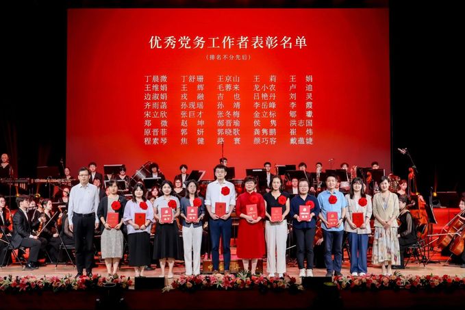 表彰大会暨“党建示范创建和质量创优”成果展示会由党委组织部、艺术教育中心、音乐与录音艺术学院承办,党政办公室、党委宣传部协办,青年爱乐乐团出演。