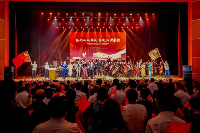 为庆祝中国共产党成立104周年,学校党委持续创新表彰大会形式,将表彰大会与党建成果展示会相结合,以基层党建成果汇报呈现我校党建工作的质量和水平;将表彰大会与学校专业特色相结合,生动彰显党建业务融合发展的震撼力和感召力。