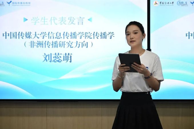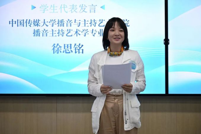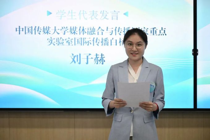 结业仪式上,国际传播白杨班刘子赫、信息传播学院刘蕊萌和播音与主持艺术学院徐思铭作为学生代表发言。她们表示,在为期三天的学习中,深入了解了区域国别研究与国际传播的前沿理论,通过实地参访沉浸式感受到国际传播的实际场景与先进理念。未来,将积极努力把学到的知识和经验运用到学习与工作中,为区域国别建设与国际传播事业贡献青春力量。