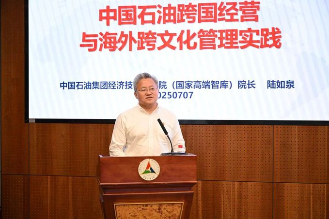 陆如泉以《中国石油跨国经营与海外跨文化管理实践》为题,结合中国石油国际化发展历程,阐释企业在海外运营与分区域国别跨文化管理中面临的机遇与挑战,提出“求同去异、求同存异、求同求异”跨文化传播方法,为学员们提供了宝贵的跨文化传播经验。