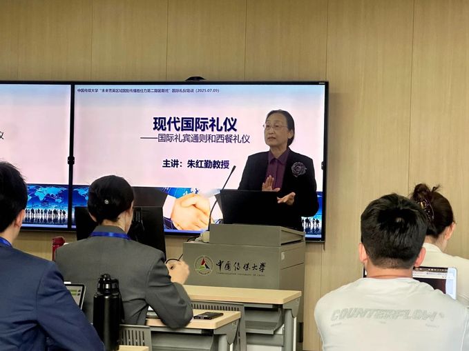 国际关系学院教授、中国礼宾礼仪专业委员会核心专家朱红勤在《现代国际礼仪——国际礼宾通则和西餐礼仪》讲座中,通过生动的案例解析了现代国际外交的礼仪规范,并在互动环节示范国际场合中的礼仪标准,为学员们提供了实用的指导。
