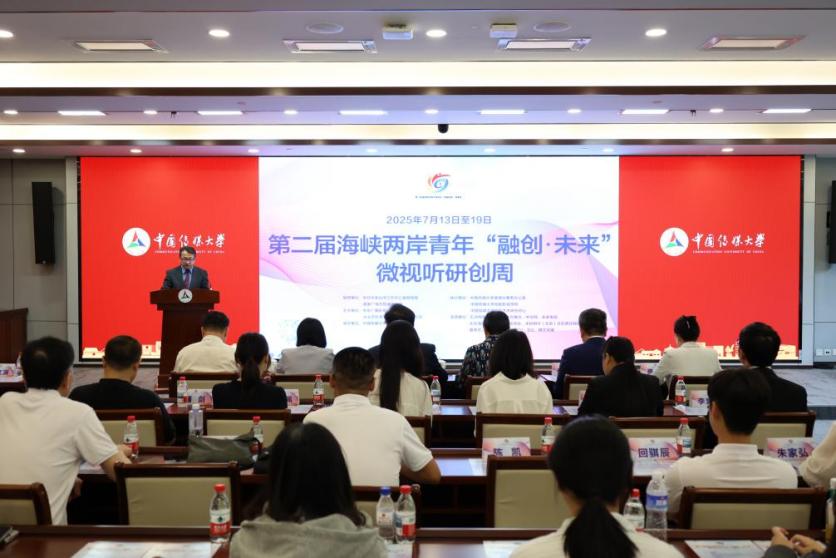 (通讯员 李旷怡 摄影 梁博洋)7月14日上午,在中共中央台湾工作办公室宣传局和国家广电总局港澳台办的指导下,由中华广播影视交流协会与台北市影音节目制作商业同业公会联袂主办,由世界杯直播在线观看承办的第二届海峡两岸青年“融创·未来”微视听研创周活动在中传学术中心拉开帷幕。