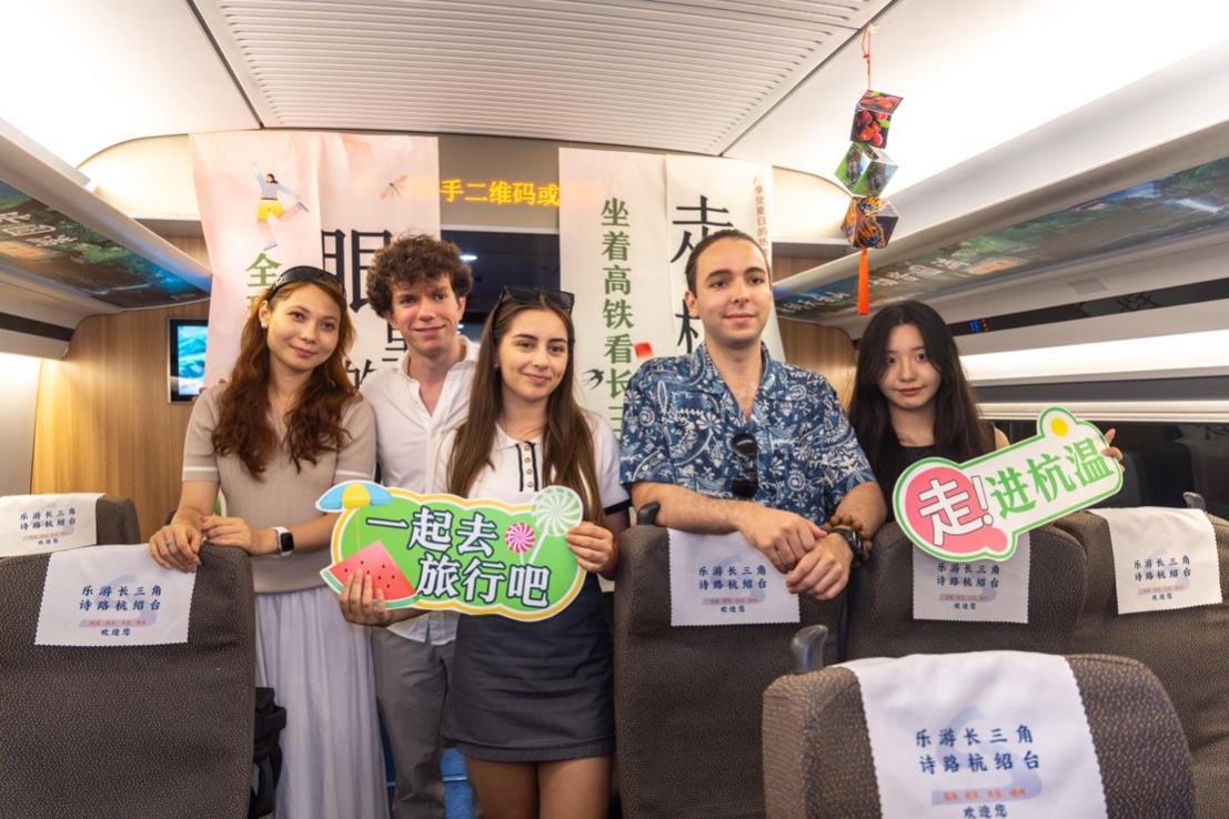 全球青年双语主播乘坐杭温高铁前往温州途中合照