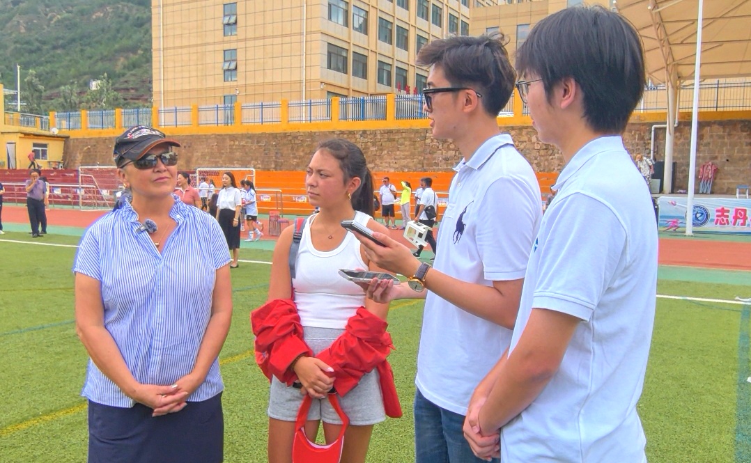 在志丹县保安小学群山环绕的足球场上,来自中美两国的青少年展开了一场别开生面的男女混合足球友谊赛,以体育为媒促进交流。双方队员在绿茵场上奋力拼搏,展现出青春风采,赛后更是热烈交流,足球成为了连接友谊的纽带。来自世界杯直播在线观看中英双播专业的两位同学现场进行了精彩的双语足球解说,将比赛气氛带入高潮,获得现场观众和美国研学团师生的交口称赞。