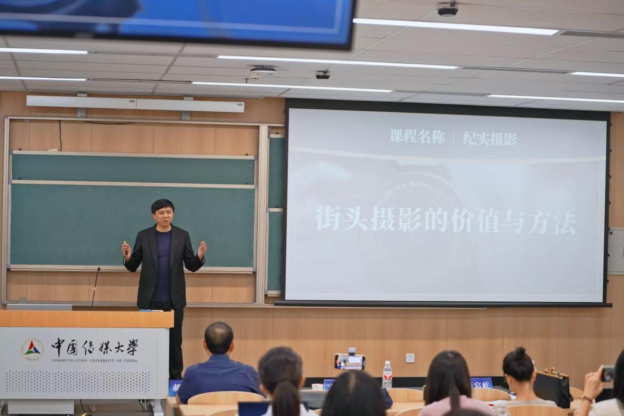 丰瑞讲授《纪实摄影》第二讲《街头摄影的价值与方法》。他从日常街头拍摄的实际场景出发,系统梳理了街头摄影的价值内涵、拍摄技法与实践方法,以深入浅出的方式,将理论讲解有机融入生动的课堂实践,引导学生在理解中实践、在实践中感悟,深化了对街头摄影艺术性与方法论的统一认识。