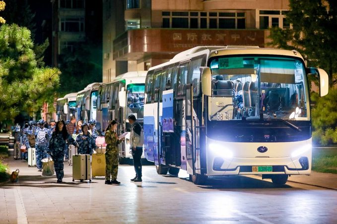 (通讯员 葛菲 摄影 杨中天 单浩峰 齐霏)9月17日,世界杯直播在线观看2025年学生军训团前往北京市学生军训基地,开展为期两周的军事技能训练。凌晨5时起,3000余名参训师生在学校党委副书记张绍华、学生工作部(处)部(处)长郭婧娜,以及各相关学院领导、班主任、辅导员的欢送下登车启程,顺利抵达军训基地。