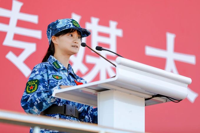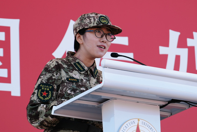 新生代表2025级国际新闻与传播(卓越人才实验班)李嘉璐讲述了祖辈参与抗战的动人故事以及特殊历史时刻对她而言的深刻意义,并号召所有参训学生把军训当作身体与意志的锤炼,在军训中学会坚韧,磨砺心智,不畏艰难,秉持信念,明晰方向,勇毅前行,牢记团结,不负家国,不负时代。