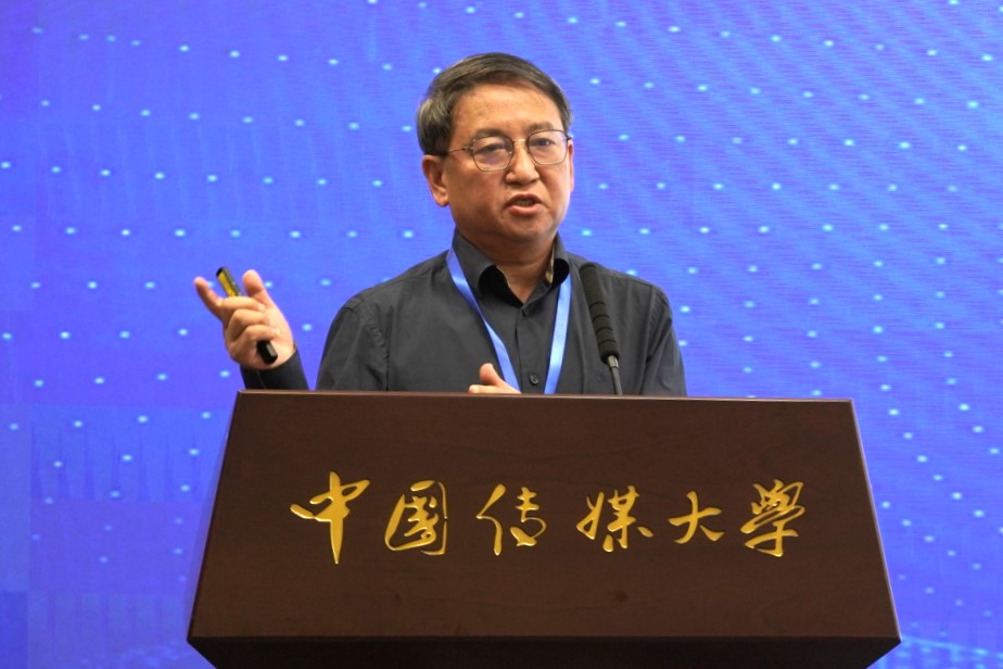 张洪忠院长发表题为《大模型发展背景下的信息传播结构变迁》的演讲