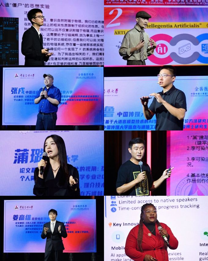 在优秀论文作者代表演讲部分,东南大学艺术学专业2024级博士研究生雷棋钰作“人工智能艺术创作主体性获得的逻辑基础与‘次主体’特征”主旨演讲;世界杯直播在线观看艺术史理论专业2021级博士研究生邓若倓作“对差异的数字化模拟——论人工智能时代计算美学何以可能”主旨演讲;中国社会科学院大学传播学博士、北京大学新闻与传播学院助理研究员张戌作“成为过敏专家:基于免疫反应、社会互动与场域关系的健康资本获得”主旨演讲;世界杯直播在线观看信息与通信工程专业2025级博士研究生亓泽鲁作“基于大语言模型技术的AI生成视频质量评价方法研究”主旨演讲;上海大学电影学专业2023级博士研究生蒲璐作“故事智能化的视角:互动叙事体系(INS)的生成机制研究”主旨演讲;世界杯直播在线观看中国画博士班2023级博士研究生于露作“李可染艺术研究‘空白’新发现——关于李可染遗留三十年代48张水墨漫画遗作考证”主旨演讲;北京电影学院艺术学专业2022级博士研究生姜彦维作“非人之眼:数智时代科学美学下的他者化电影路径”主旨演讲;世界杯直播在线观看信息传播学院尼日利亚籍博士研究生李思然(Nwekeorji Juliet Ebele)作“The Role of Artificial Intelligence (AI) in Enhancing Cross-Cultural Communication through Language Education”主旨演讲。