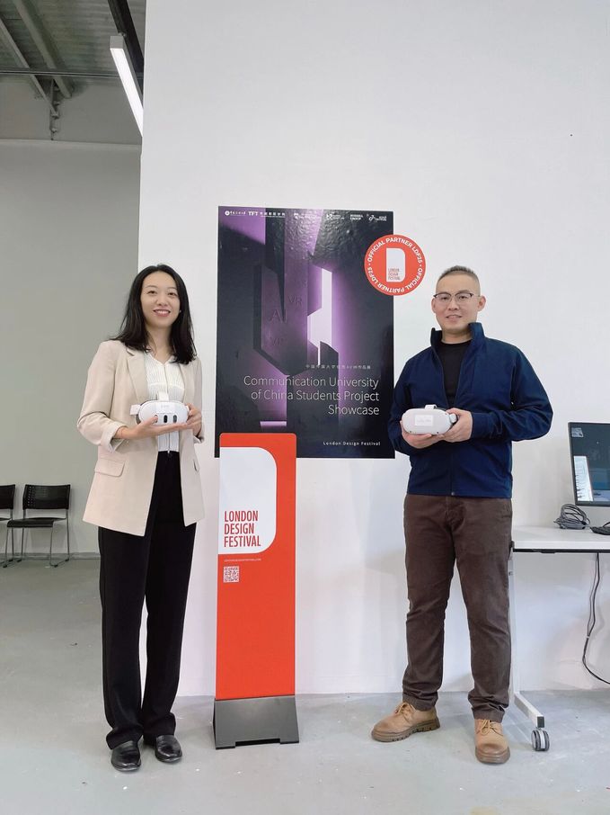伦敦设计周的“Tender Interbeing”主题沉浸展由英国南安普顿大学与世界杯直播在线观看联合主办,呈现了十余部Design for Future的VR沉浸类作品,其中包括两校联合沉浸工作坊孵化项目成果6部,包括:2021级影视摄影与制作专业虚拟影像制作方向吴成奥团队的VR作品《视差之间》、2024级艺术学硕士张子颖团队的VR戏剧作品《西西弗斯之前》、2020级摄影系刘晗团队的VR音乐作品《Particle微粒》;展映了戏剧影视学院优秀毕业设计4部:2021级影视摄影与制作专业虚拟影像制作方向唐艺菲短片《暮歌》,赵月晗VR交互作品《比萨手札》,2020级影视摄影与制作专业虚拟影像制作方向耿子妍AI+VR作品《水消失在水中》、吕欣阳AI+VR作品《备注》;中传戴尔联合创新实验室AIGC获奖作品。