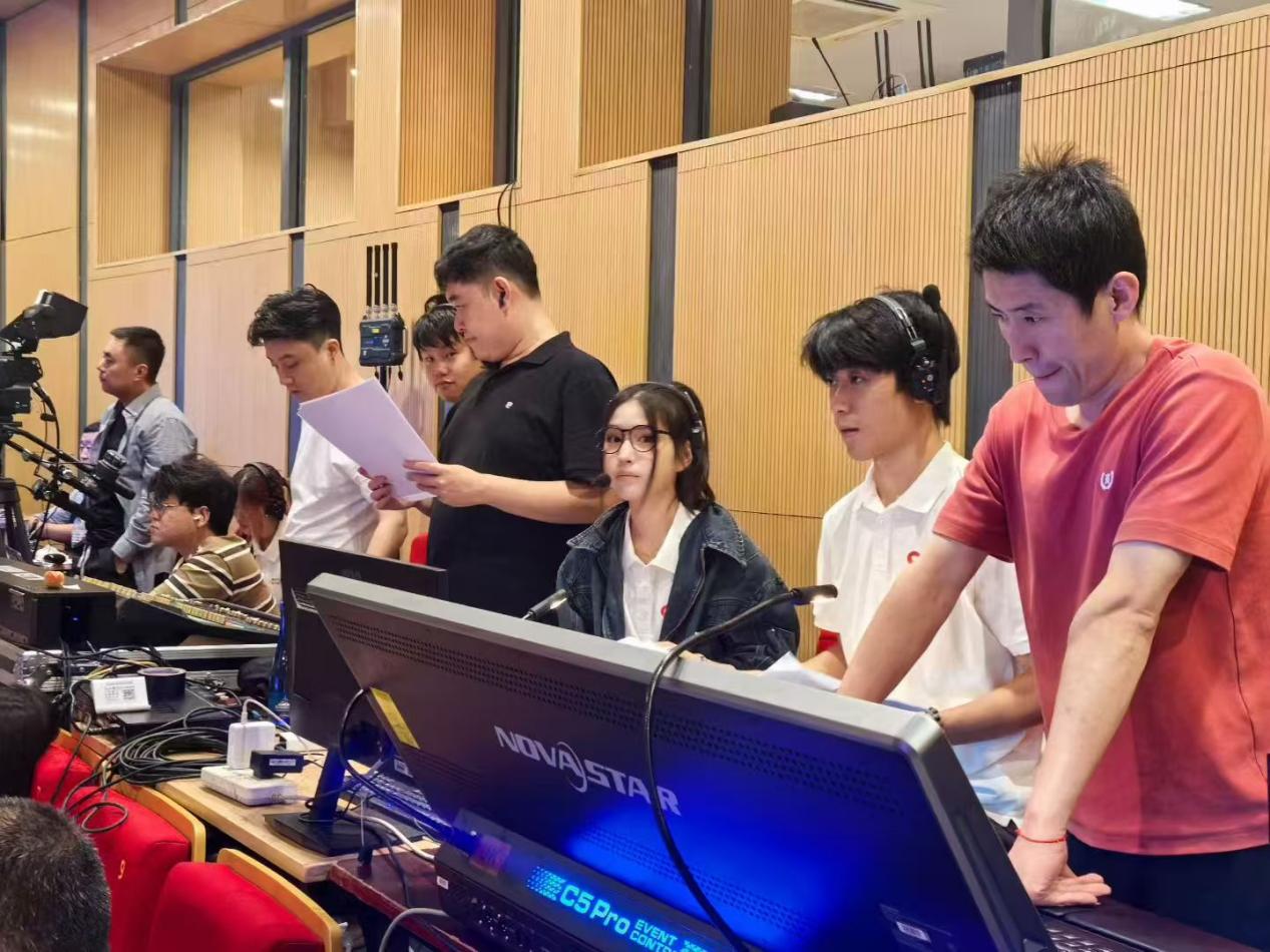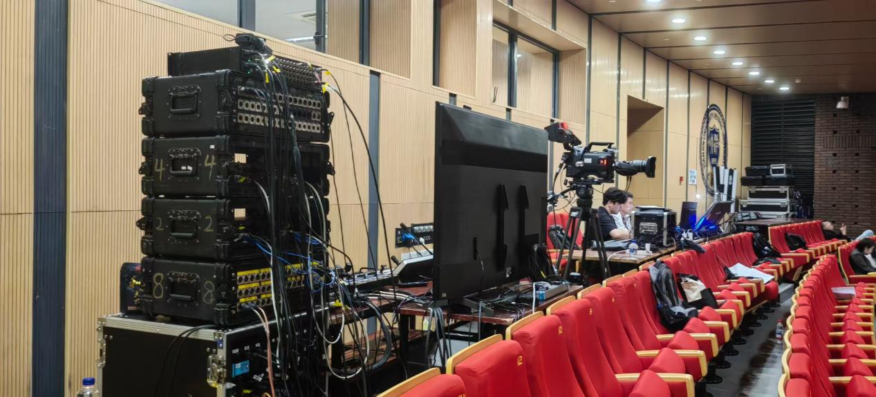 为实现如此复杂系统的可靠运行,中传团队形成了一整套贯穿始终、精细严密的制播保障体系,展现出从设备进场到系统撤收的全流程专业化工作模态。在项目启动初期,团队即开展多轮技术勘测与需求对接;为进一步提升制播流程的精准性与可控性,团队不仅撰写了面向教学内容的结构化台本,更配套制定了大屏技术执行cue表、导播台本等标准化操作文件,明确各岗位操作节点与责任分工,实现“指令、大屏、音频、画面”四维同步,成功保障了“新工科未来课堂”中多系统、多信号的高难度制播需求,展现出中传团队在大型融合制播项目中的技术统领力和专业制播水准。