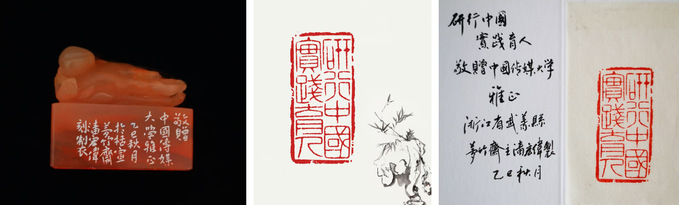 ▲ 柳城篆刻家为“研行中国·实践育人”实践教学活动刻制印章