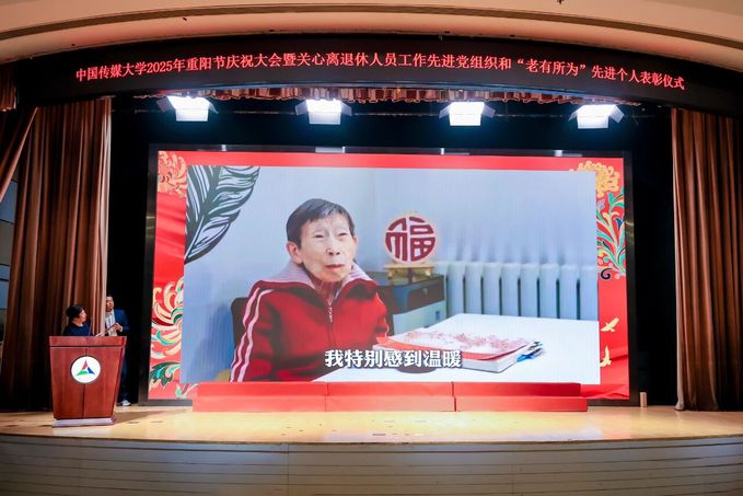 “老有所为”先进个人代表姜秀华教授感谢学校组织搭建“老有所为”平台,为自己能依托平台持续发挥作用、实现个人价值感到自豪。她表示,将继续以初心为笔,在“教育强国,中传有为”的时代答卷上,书写银龄的新作为。