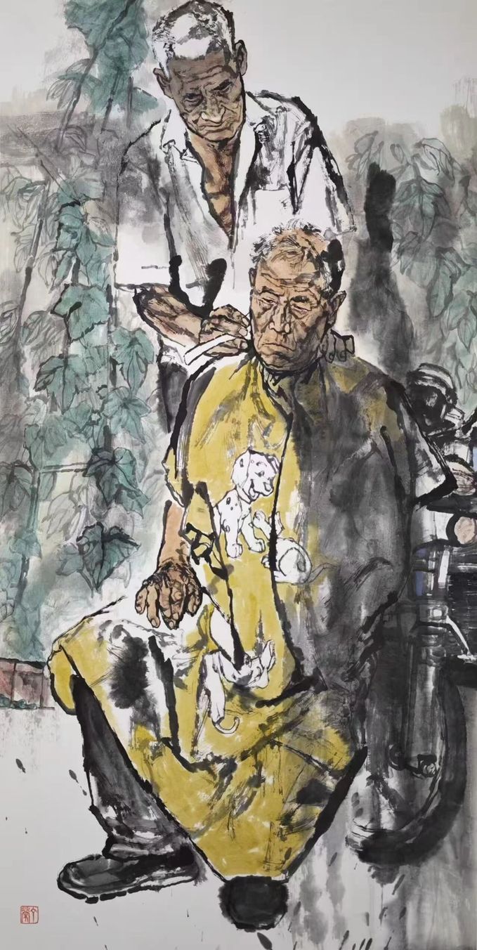 在山东淄博峨庄,人物组10余位师生开展了为期八天的“笔墨落乡间”下乡写生教学实践。师生将课堂移至田间地头、农家院落,直面最生动、最质朴的乡村人物,在充满烟火气的场景中思考如何运用传统水墨语言表现当代人物的内心世界与时代特征。在实践教学过程中,教师通过示范讲解、即时评画、专题研讨等方式,围绕“如何捕捉鲜活动态”“如何在现场组织画面”“水墨写生中的意笔表现”等课题对研究生进行系统指导。通过对乡村的深度观察和真挚的情感投入,创作饱含温度与故事的生命礼赞,使笔下的人物既有传统根脉,又具鲜活的时代气息,实现艺术境界与人文素养的双重提升。