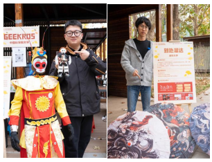 活动现场,人流如织、热闹非凡。在科技领域,中国科学院大学GEEKROS团队带来的“孙悟空”站立式机器人与“机器狗”,直观呈现了其在人机交互方向的最新探索;文化传承领域,清华大学的“3D打印复原文创饰品”与北京外国语大学的“此情瓷景”项目,让非遗文化焕发全新活力,吸引了大量师生驻足交流;互动体验领域,中国科学院大学的“博士农场”项目依托农用机器人开展科学种植,并将自产山楂制成特色食品,获得师生广泛好评。