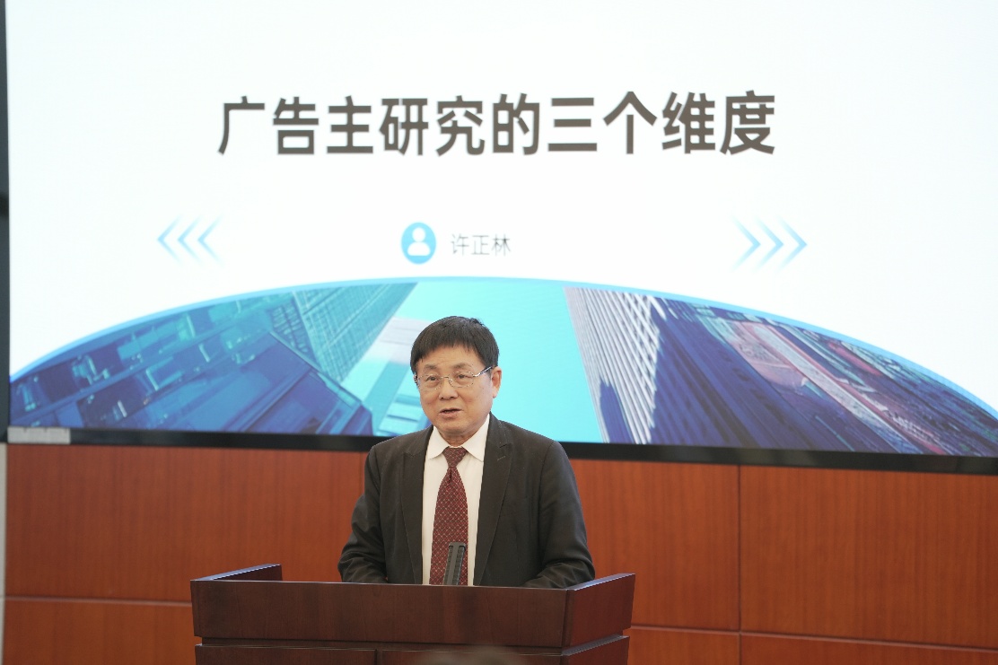 上海大学新闻传播学院教授、中国广告主协会特邀副会长许正林从“广告主研究的三个维度”出发,对广告主的概念界定、广告主的三角生态体系、广告主本体论、广告主的广告价值等角度进行了深入的探讨。他提出,广告主的广告价值在于营销战略、品牌战略,广告主应当承担社会责任,实现广告主的可持续发展。