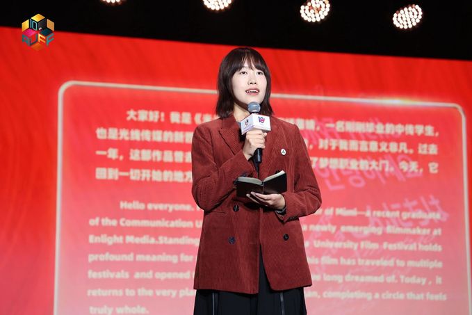 潘若简在致辞中强调了青年影像的多元性、共通性与潜力,并呼吁创作者在交流中成长,以电影跨越文化边界,共创未来。她表示,学生作品也许还不够完美,但充满活力,也显示出更多的可能性。而学生影像聚会的意义,正是在于让这种“初生的力量”相互撞击,让想象与情感,在对话与观摩中不断成长。