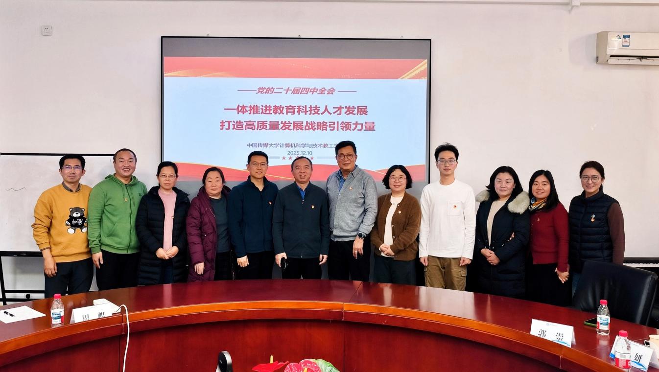 王晖在总结讲话中,首先充分肯定了计算机科学与技术专业长期以来在服务国家需求和学校事业方面做出的贡献和努力。结合“一体推进教育科技人才发展”的战略要求,他对支部及专业后续工作提出三点要求与期望:一是全面贯彻落实习近平总书记重要回信精神,坚定不移落实立德树人根本任务,深化改革创新,不断提升高素质传媒交叉人才培养质量;二是认真擘画专业发展的“十五五”规划蓝图,强化学科建设和专业改革,推动科研范式转变,紧密结合国家需求和学校特色优势学科,探索计算机科学与技术专业的科研创新交叉融合,做好有组织科研工作;三是积极探索“引育并举”的高水平师资队伍建设路径,引进领域领军人才与青年学术骨干,同时搭建阶梯式培育平台,为现有教师的科研提质赋能。