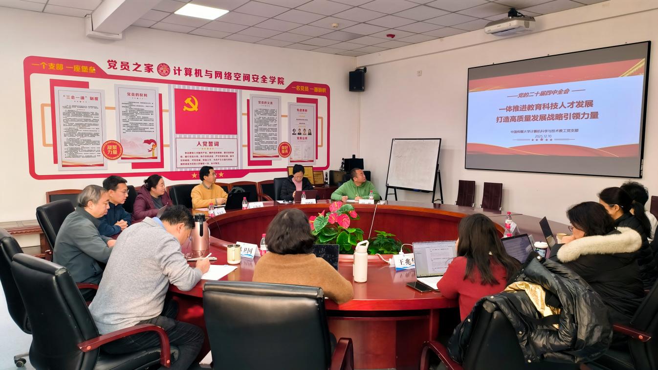 (通讯员 王琦)为深入学习贯彻党的二十届四中全会精神,切实把思想和行动统一到党中央决策部署上来,12月10日上午,计算机与网络空间安全学院计算机科学与技术系教工党支部召开专题学习会。党委常委、副校长王晖出席会议并讲话,学院党委副书记、院长林卫国与支部党员一同参会。会议由支部书记王琦主持。