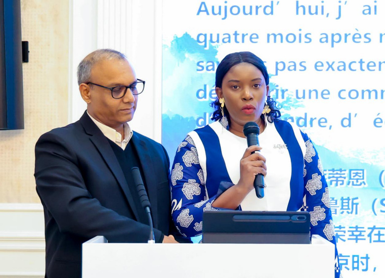 记者学员代表、毛里求斯国家电视台制片人萨蒂恩·布鲁特和加蓬24台记者玛利亚·巴蒂斯塔·姆比娜·穆萨武在结业式上共同发言。他们表示,四个月的学习旅程让他们见证了中国令人印象深刻的发展历程,在中国感受到温暖、安全、尊重,也真正理解了“共同繁荣”和“人类命运共同体”的深意。