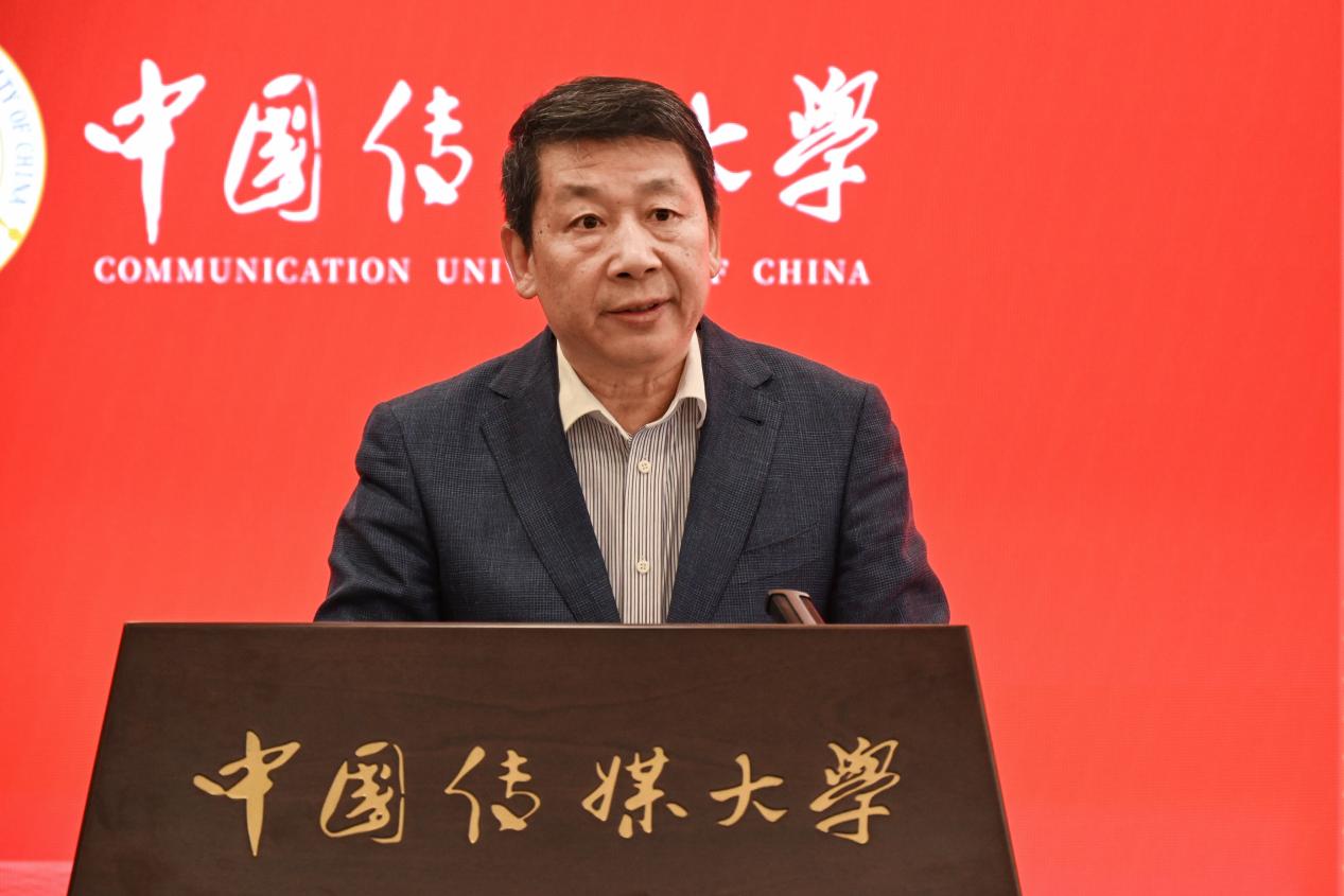郑鹏代表主办单位致辞。他指出,“人民共和国党报论坛”自2004年创办以来,始终与党和国家事业发展同频共振,紧扣主流媒体转型脉搏,聚焦党报党刊改革创新前沿,形成了一批具有理论深度和实践价值的标志性成果,现已成为我国党报党刊研究领域的权威平台、连接政产学研用的关键纽带。这份沉甸甸的成绩单,凝结着在座每一位参与者的心血与智慧,更是见证了中国主流媒体守正创新的奋斗足迹。他谈了三点认识:第一,要进一步强化主流价值引领,党报党刊姓党,其生命力在于坚守马克思主义新闻观这个魂,坚决守好意识形态阵地。第二,要进一步创新智能驱动范式。党报党刊必须将新型技术从工具层面的应用升维为驱动系统性变革的核心引擎,将其深度融入策、采、编、发、评全流程,重塑内容生产与传播的新范式。第三,要进一步深化协同合作机制。促进主流媒体与商业平台、社交媒体的优势互补,构建“政产学研用”一体化的协同网络。一年来,学校党委始终牢记嘱托,把学习贯彻习近平总书记重要回信精神作为首要政治任务,聚焦新闻舆论工作需要,在优化学科布局、提升教学科研水平、强化国际传播能力建设等方面精准发力,取得一系列阶段性成果。我们期待以此次年会为契机,为深化主流媒体系统性变革注入更多的思想动能,为推动中国新闻传播事业高质量发展贡献更大的力量。
