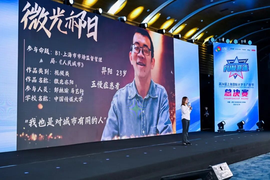 我校邹林瑜、马艺轩团队的视频作品《微光亦阳》获得上海市市场监督管理局“人民城市”命题一等奖,大广节评审团联席主席、TED地球艺术计划中国策展人程瑞芳女士高度赞扬该作品体现了年轻学子对城市包容性内涵的深刻理解,视角独特且充满温情,是她心目中的最佳作品。